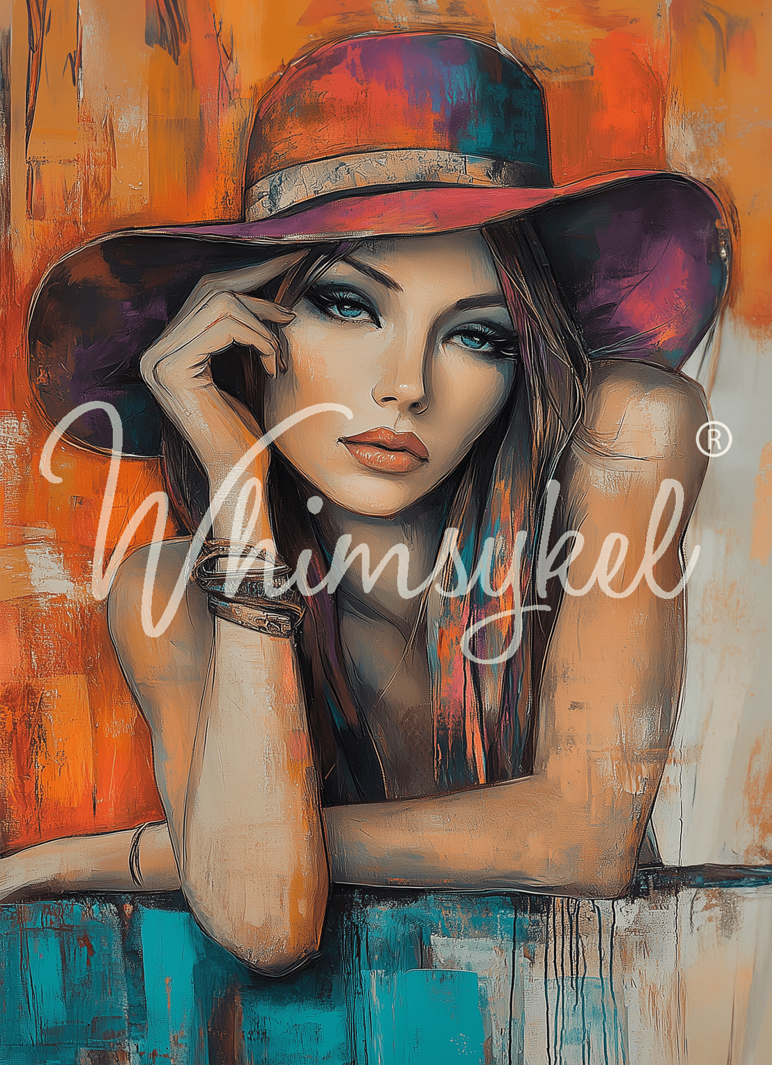 Bold, striking, and unforgettable—Anticipation captures a woman’s confident gaze, framed by vivid colors and a wide-brimmed hat. With a modern palette of fiery oranges and deep teals, this design radiates mystery, allure, and unapologetic presence. Printed after it is ordered and available in multiple sizes on both tissue and rice paper, it’s perfect for projects that need a captivating focal point.