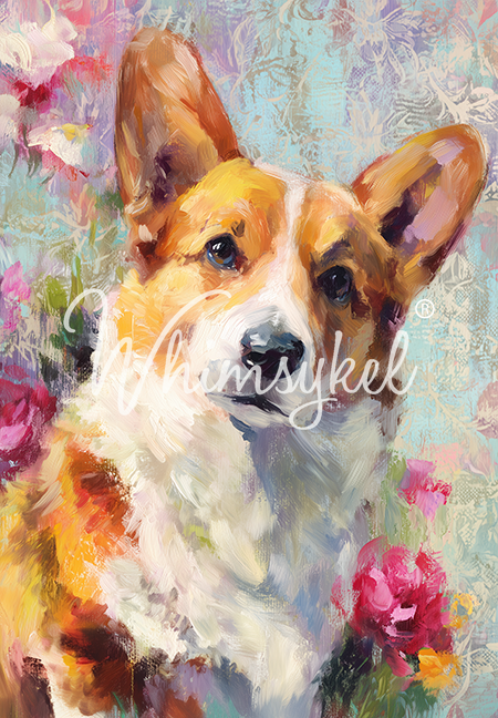 Bursting with personality, Corgi brings playful charm and warmth to your projects. Its colorful brushwork and floral background make it a must-have for whimsical DIY décor and crafts.