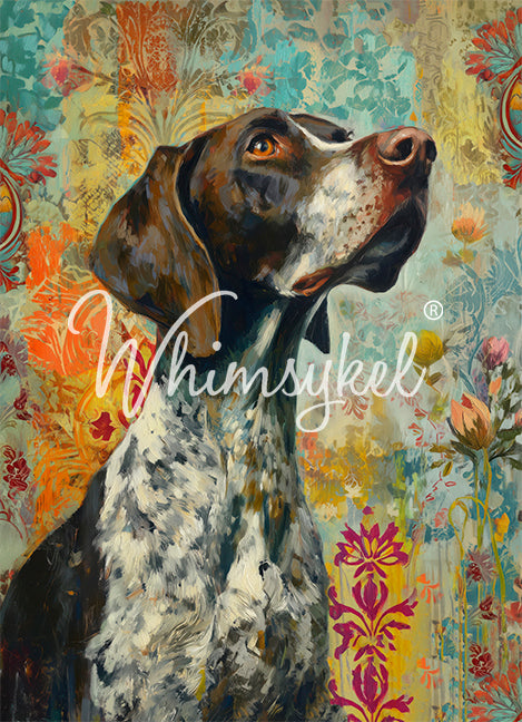 This German Shorthaired Pointer design captures elegance and loyalty in every brushstroke. Its rich color palette and floral patterns make it a stunning addition to any DIY décor or artistic project.