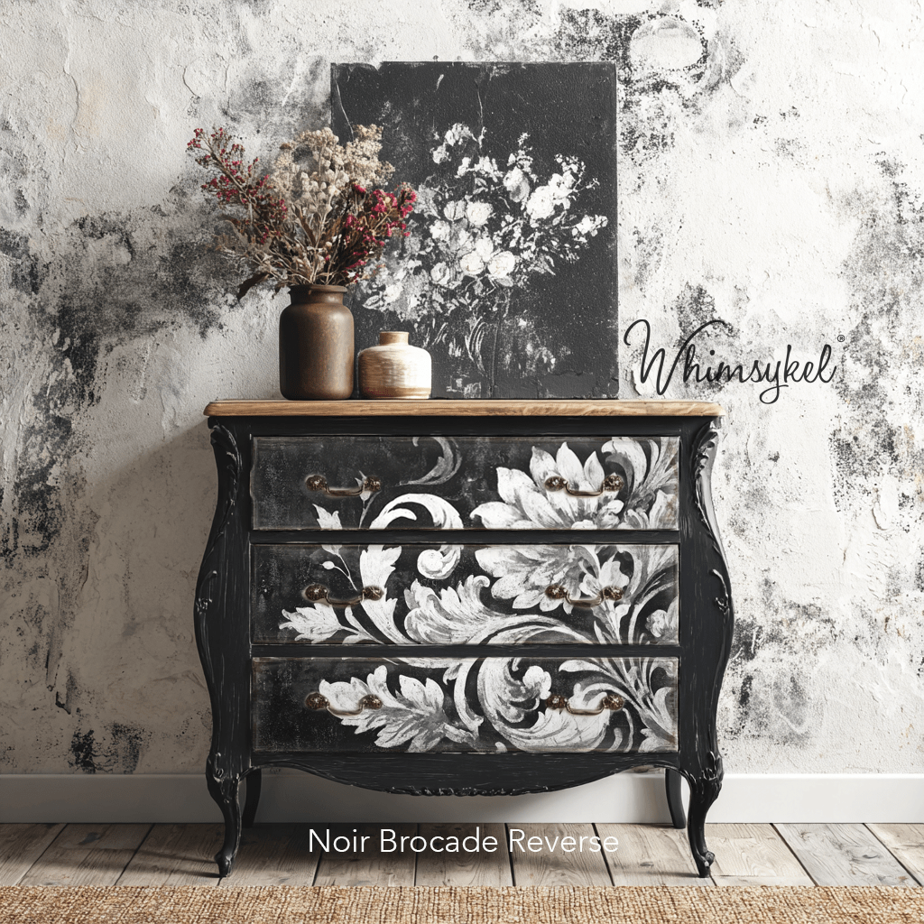 This bold black and white brocade design is a timeless classic and is the mirror to Noir Brocade. Keep it monochrome for a striking, sophisticated look — or paint the white flourishes in any color your heart desires for a custom creation that’s uniquely yours. Elegant, versatile, and effortlessly chic.
