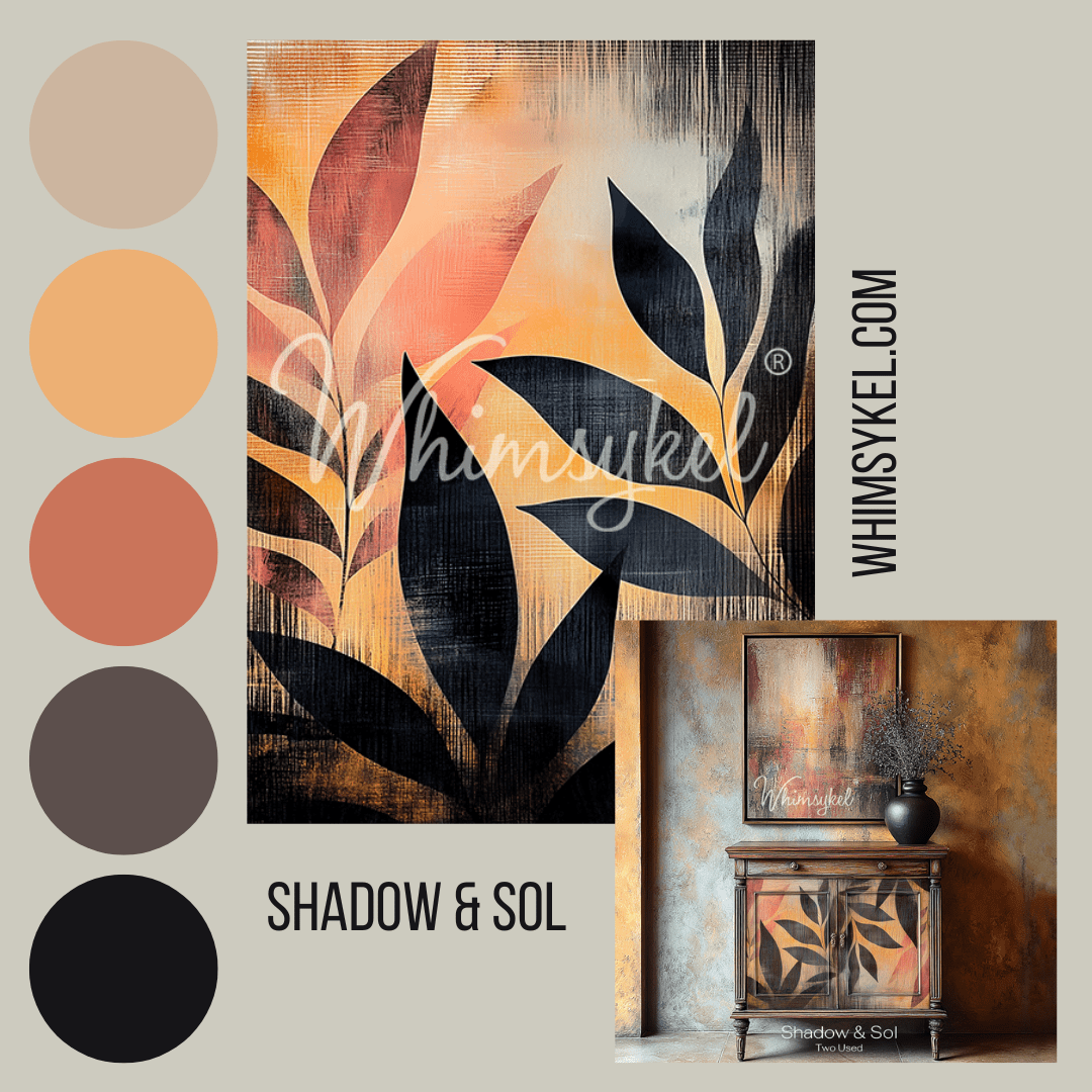 Blending bold shadows with warm sunlight tones, Shadow & Sol brings modern abstract leaves to life through moody contrasts and layered texture. This striking leaf design pairs beautifully with both boho and contemporary decor, fall-inspired projects, and anyone who loves art that feels both grounded and glowing.