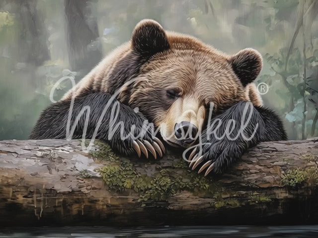 Tuckered Teddy knows that winter asks a lot of us. Curled over a mossy log, paws heavy and eyes half-closed, he rests in that quiet in-between moment where the world slows and curiosity gathers its strength again. This design tells a gentle story about winter weariness and the permission to pause, reminding us that rest is not quitting, it is how we refocus before blooming anew.